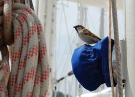 I wasn’t getting very good sleep when I first arrived. Living on a boat on the hard is always a little worse than camping, but there was an ever-present chirping. Finally I realised a sparrow or tit was always there chirruping at me. I soon realised he was trying to chuck me off his “turf”. Peering down the inside of the mizzen boom I saw a mass of nesting materials, packed in solid.