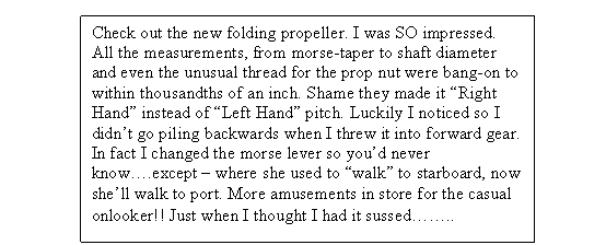 include fetching the new prop from Rhodes, fitting it, anti-fouling the hull,